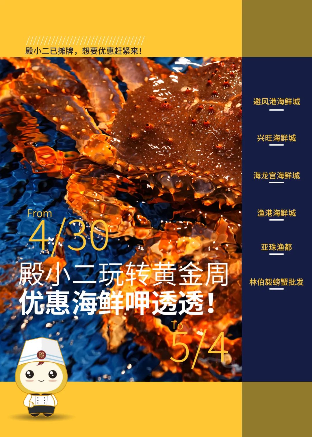 活动期间,与海鲜商户门口的殿小二立牌合影并定位高崎渔港,发布微信朋友圈,即可向现场工作人员兑换“海鲜套餐优惠”。