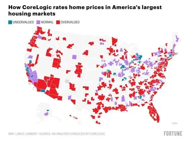 CoreLogic评价全美主要住房市场。2020年,在新冠疫情的严格封锁结束后不久,房地产市场开始繁荣。当时的经济学家并不担心。在他们看来,千禧一代首次买房的人口潮、在家工作的购房者的涌入,以及较低的抵押贷款利率,都支持了房价的上涨。然而,近几个月来,他们的态度发生了变化。就在上个月,达拉斯联邦储备银行(Federal Reserve Bank of Dallas)的研究人员发表了一篇论文,警告说房地产泡沫可能正在酝酿。与此同时,上周房地产经济学家乔治·拉蒂乌(George Ratiu)宣称“我们目前还没有进入房地产泡沫,但如果房价继续以目前的速度上涨,我们将滑向泡沫。”