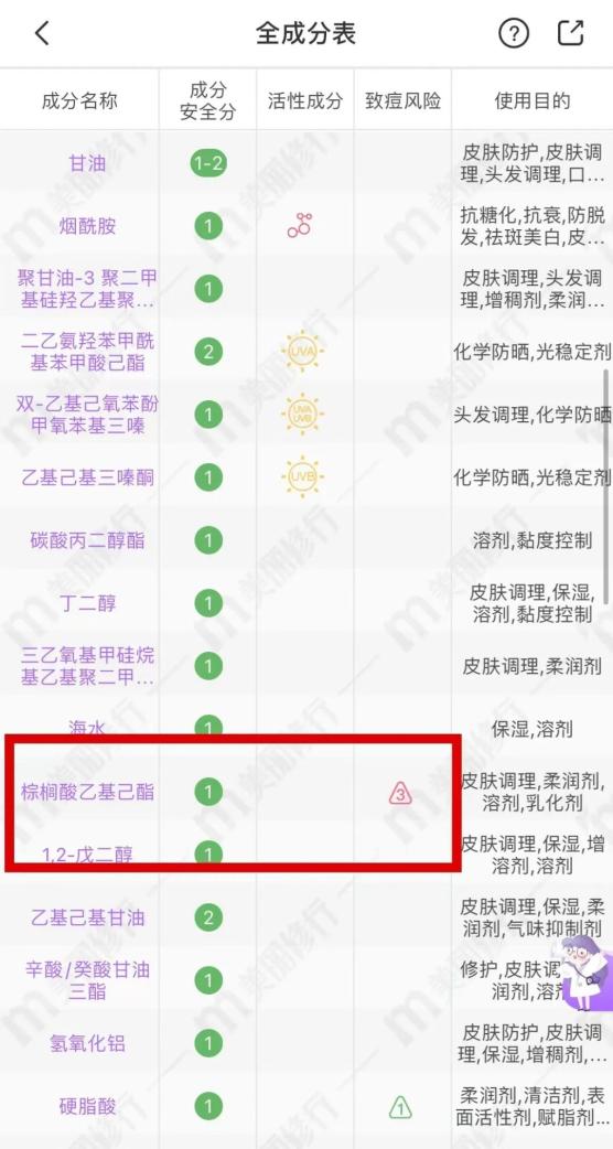 珀莱雅发布致歉声明后,不少网友跟帖评论称“难怪自己用着会长痘”。而北京商报记者使用相关App查询该产品成本后发现,其中的棕榈酸乙基己酯成分就有较高的致痘风险。
