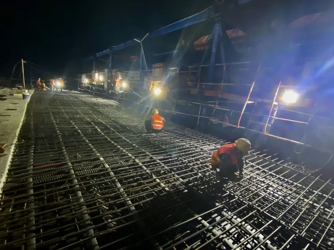 位于五河县头铺镇西侧的S313淮河特大桥项目建设现场,大桥建设者加班加点奋战在岗位上。目前,大桥主体建设已完成近50%,计划今年11月底建成通车。