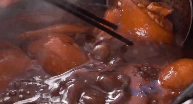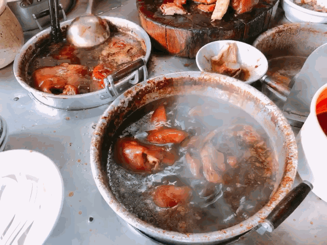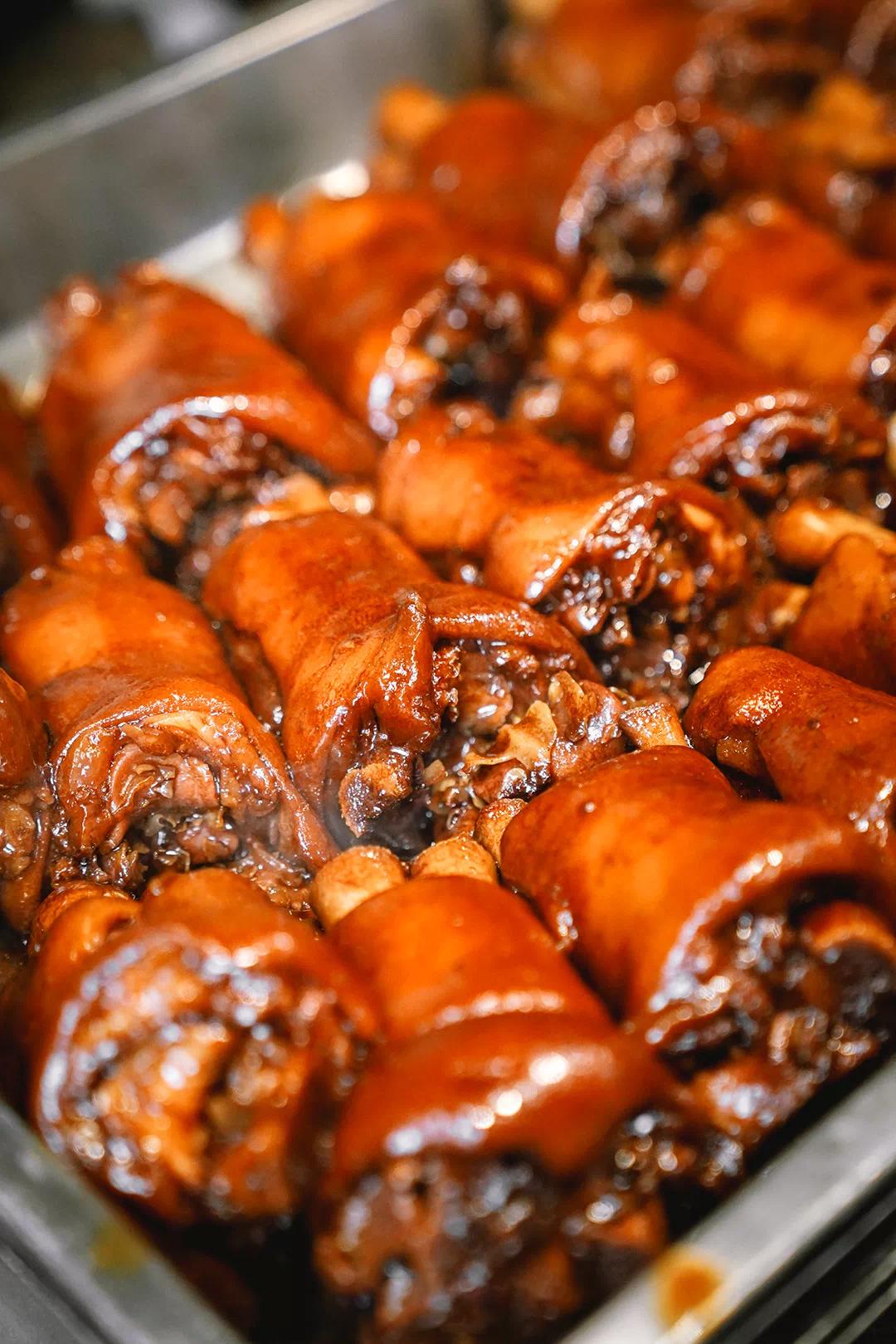 一锅浓香的老卤水是30多年的保留与传承,猪脚在这锅老汤中翻滚着,像是找到了归宿。