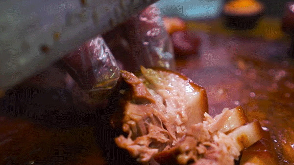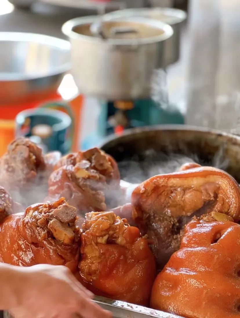 懂吃的行家都会在凌晨去抢“四点”,毕竟这一块肥瘦比例最佳,肉质最是紧实可口,一口就能尝尽猪脚筋、骨、肉的交错复杂。
