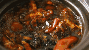 受够了清汤寡水的人,来到隆江都难免会赞叹猪脚饭的“圆融”味道。根据整只猪脚的不同特点,隆江人把猪脚分为四段:头圈、断轮、四点、蹄尾。