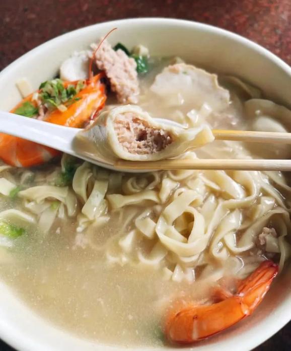 小红书©️ 野蛮女友~黄舒丽清澈的汤底中加入青菜、卷章、肉籽以及各式鱼丸,饱满的饺子浮在高汤中,轻咬一口肉馅浓稠、香嫩无比。