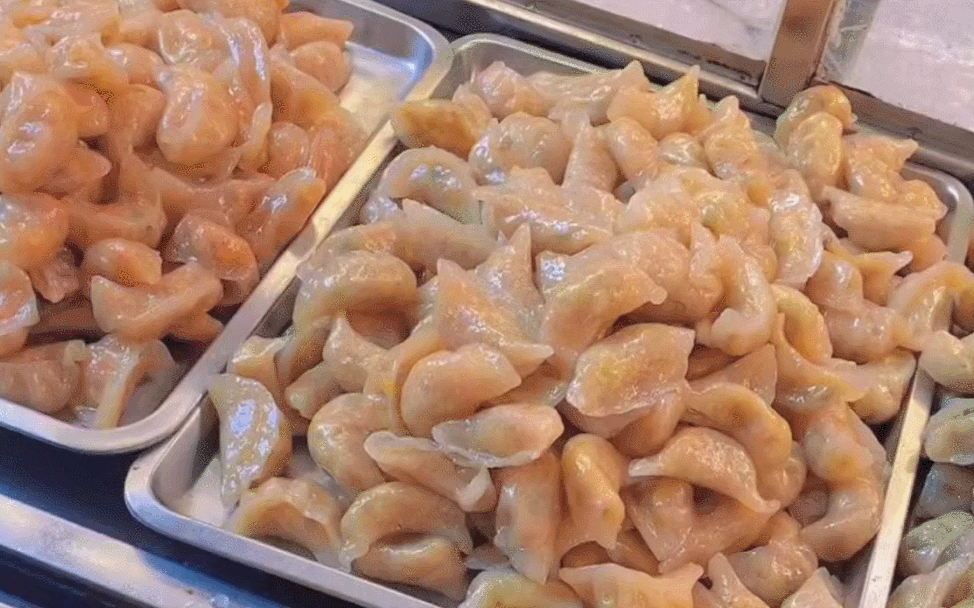 小巧精致的薯粉饺淋上辣椒酱汁后更是一绝,那种直冲大脑的鲜味让人一口一个根本停不下来。