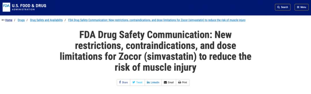 图2. 图片来源:https://www.fda.gov但目前的《中国实体器官移植受者血脂管理规范(2019版)》以及uptodate建议,对于肌酸激酶和肝酶正常的稳定无症状而且对其而言无其他药物或者无法接受其他药物的患者,可以继续使用辛伐他汀和环孢素,并且每6~12个月监测一次CK。否则,建议将辛伐他汀换为其他他汀药物。