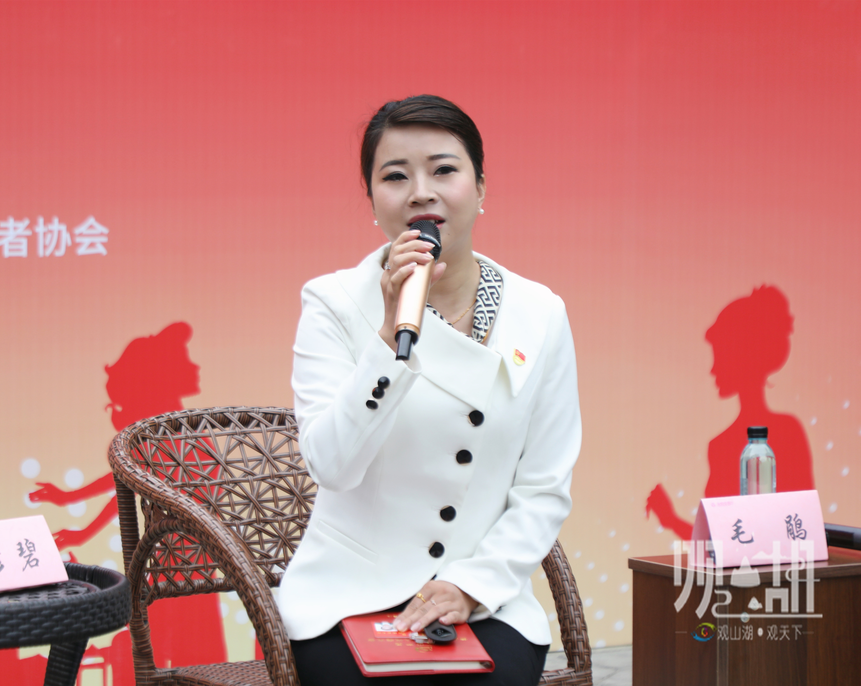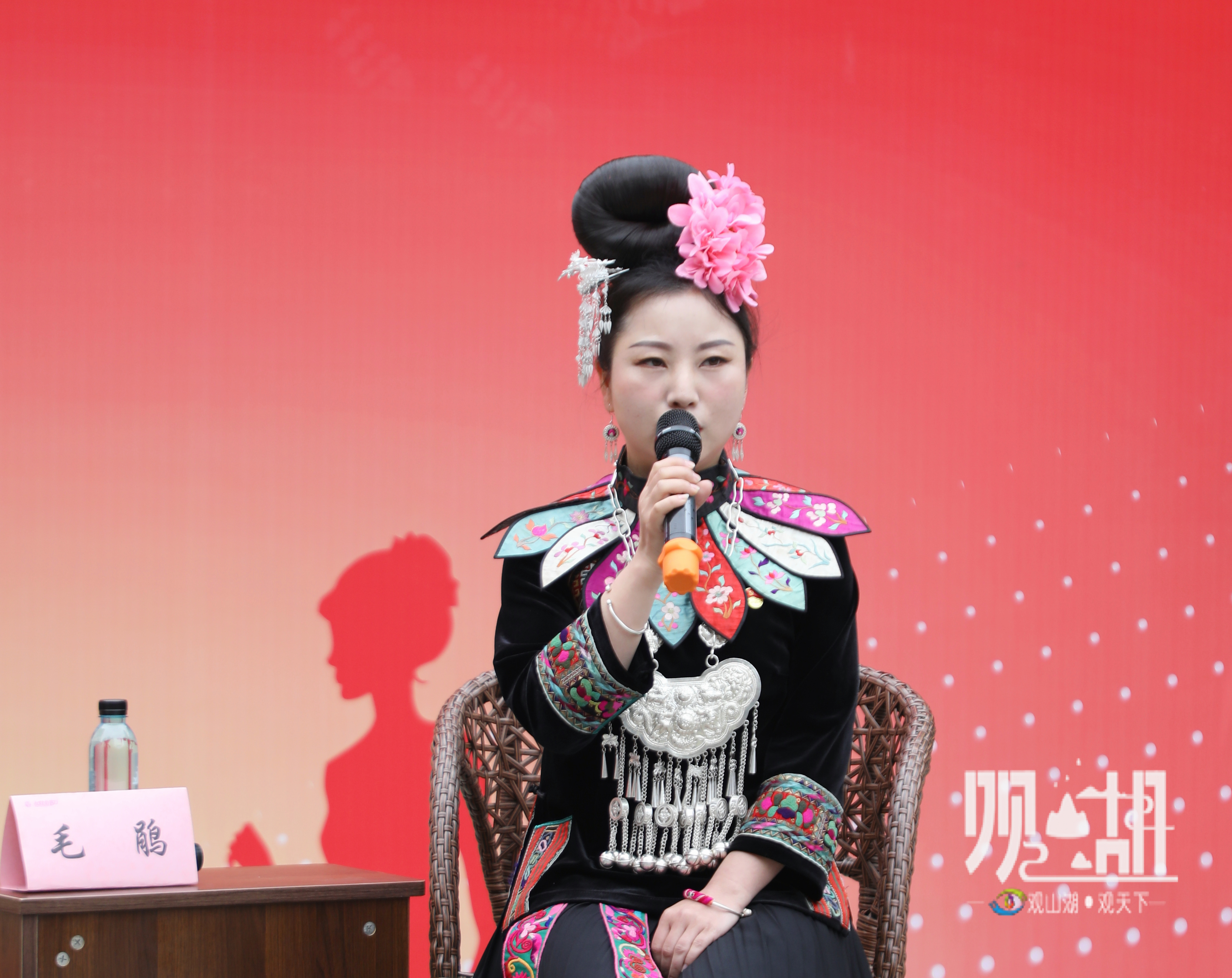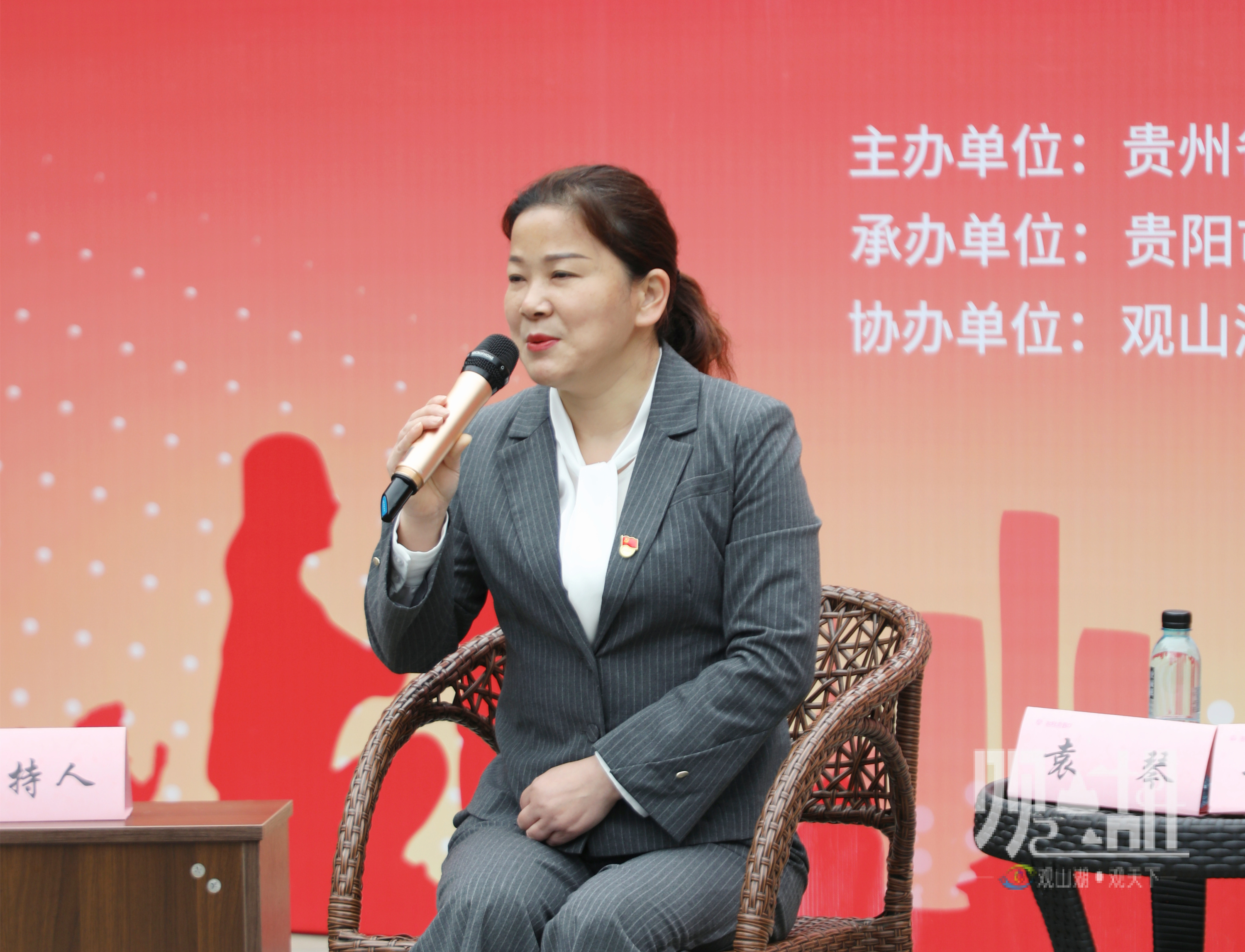 此次宣讲活动以“女性会客厅”访谈形式进行,邀请了中国共产党贵州省第十三次代表大会的3位代表——省巾帼志愿宣讲队队长、女红军纪念馆馆长母彦碧,雷山县毛克翕茶业有限公司董事长毛鹃,观山湖区金阳街道金元社区党总支书记、居委会主任袁琴,分别与社区干部群众分享她们参加省第十三次党代会的所见所闻所感。