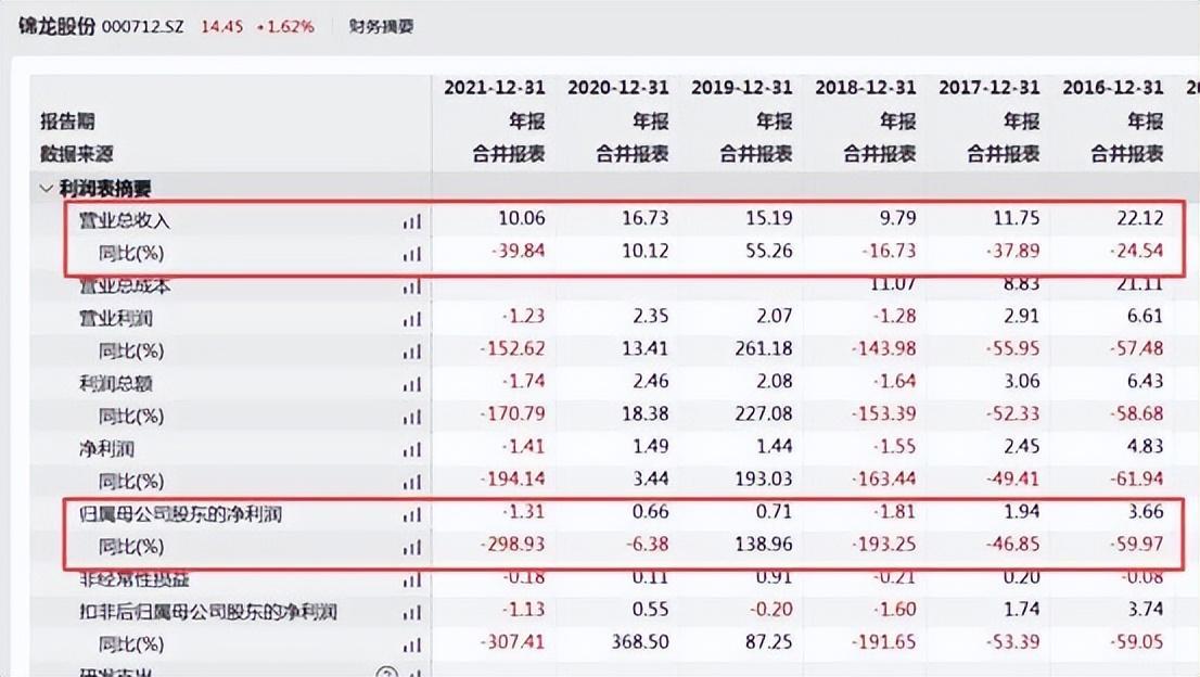 到2021年,锦龙股份实现营业收入10.06亿元,同比下降39.84%,归母净利润则亏损1.31亿元,同比下降298.93%。