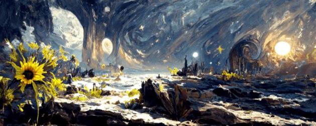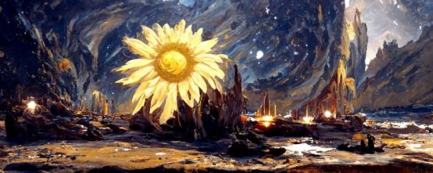 2022年4月,一名设计美学博主在AI绘图工具Disco Diffusion的运行程序上敲下了“星空下的向日葵花海”的描述字句,一幅幅融合《星空》《向日葵》风格的画作在AI鬼斧神工的雕琢下产出,仿佛梵高在赛博时代复生。