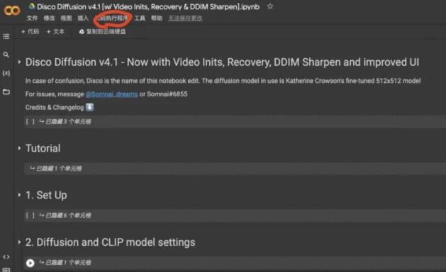 想要快速使用Disco Diffusion,掌握基本的三个步骤就能实现。首先是以科学的方式打开程序地址(文末附上地址),点击代码执行程序中的“全部运行”,当程序运行完成就能得到默认参数下的示例图,由此以确保网络环境稳定以及程序运行无误。
