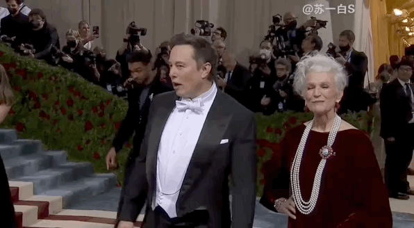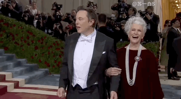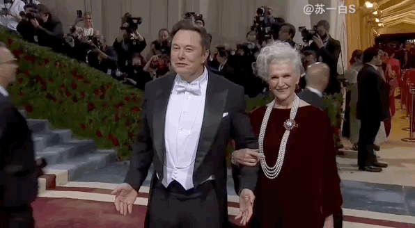 74岁的Maye Musk和刚宣布收购了推特的首富儿子Elon Musk一起现身Met Gala。