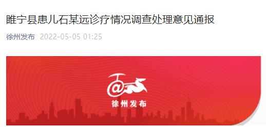 5月5日凌晨,“徐州发布”微信公号发布江苏睢宁县患儿石某远诊疗情况调查处理意见通报。