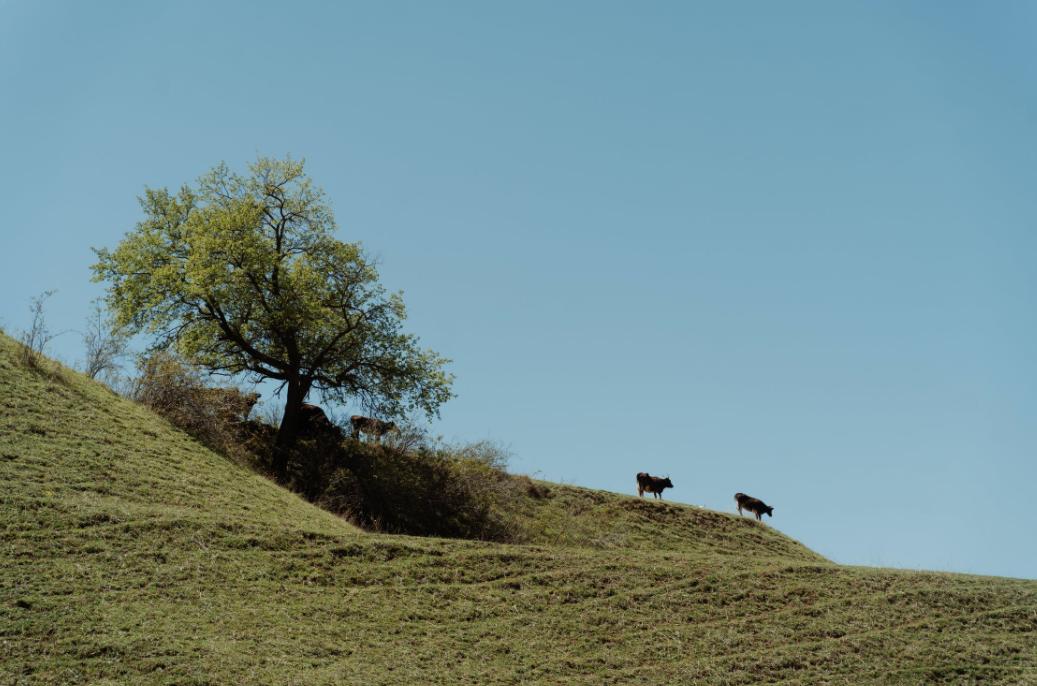 那顿肉我们吃得很仔细,肉被风吹干,再煮熟,还是干硬的,只有小块地咀嚼,肉里有风的悠长干燥,有草从青长到黄的香,有石头的咸,有松枝烧柴的火气。一大盘子牛肉,细嚼慢咽地全吃光了。