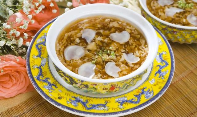乌鱼蛋汤是由金乌贼的缠卵腺加工而成的“乌鱼蛋”,以蛋色乳白、轻薄如纸、滑润爽口、酸咸皆备俘获无数芳心。一碗下肚,浓烈但是又变化无穷。