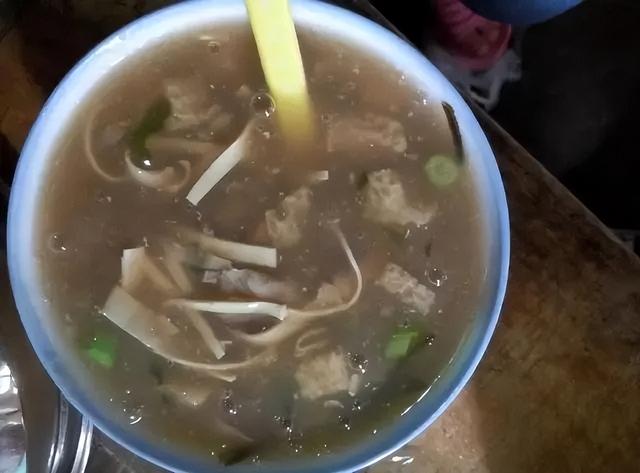 山东胡辣汤精髓在于口感劲道的“面筋”,喝得时候可以浇一点醋、香油,再加点蒜沫,辣中有麻,麻中透酸,酸中有香,满当当的一碗喝下去,荡气回肠!