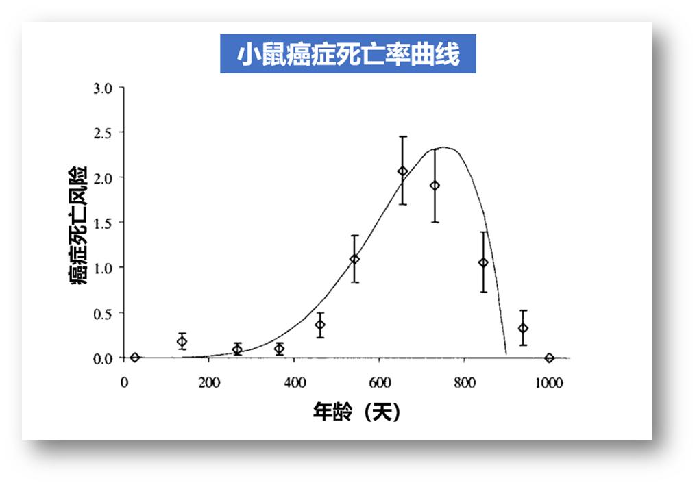 在实验室养的小鼠,平均寿命大约两年。它们也是随着年龄增加,癌症发病率和死亡率都提高。但那些活到特别老的小鼠,死于癌症的概率居然也降低了。