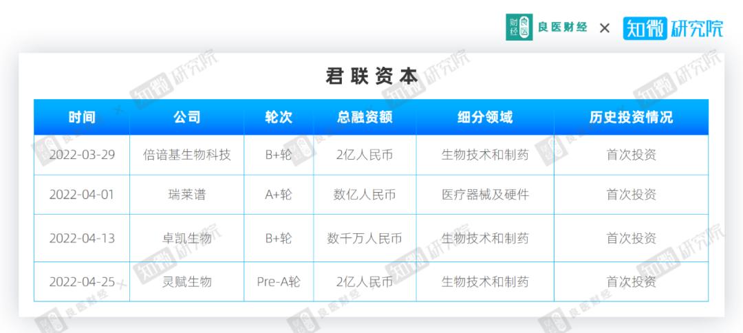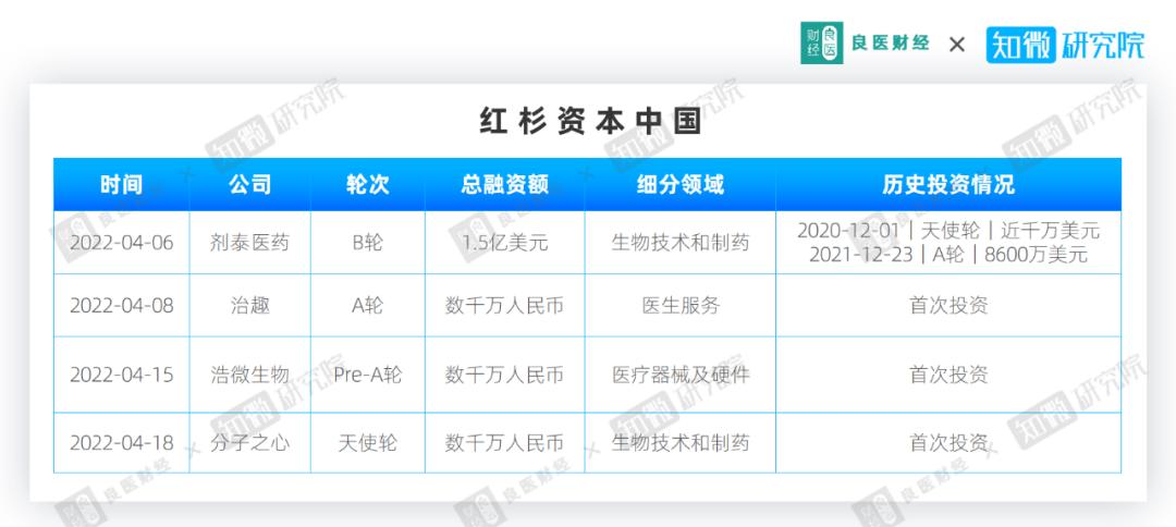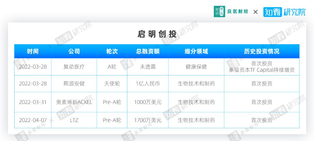 4月医疗健康领域投资概况