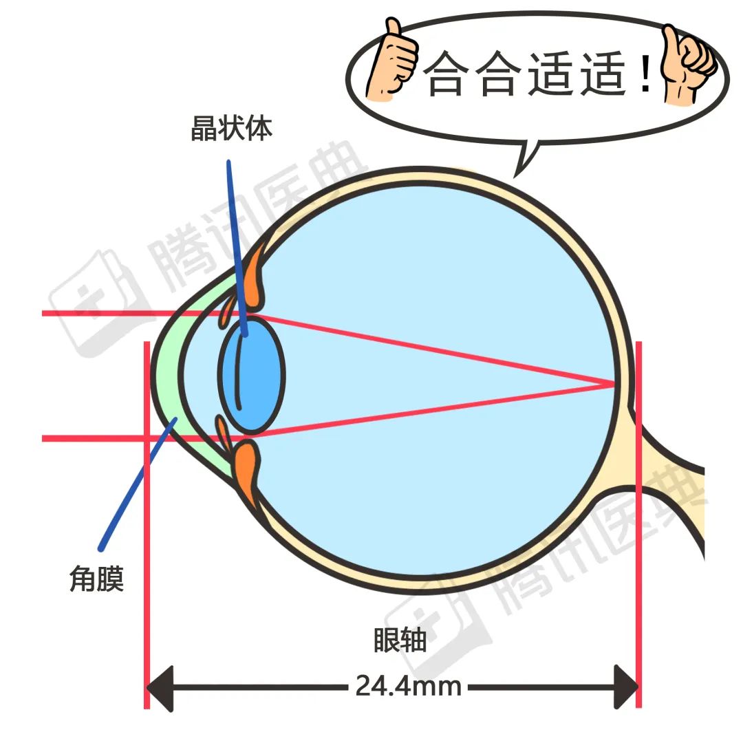 眼睛的长度正常,也就是眼轴正常