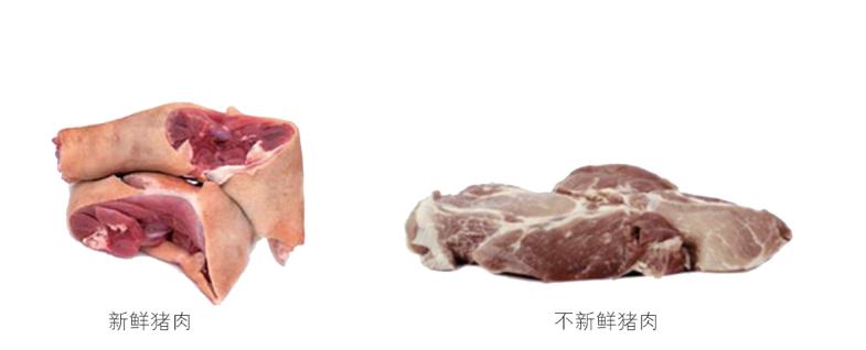 不新鲜肉的肌肉无光泽,脂肪灰绿,外表极度干燥或黏手,指压后的凹陷不能复原,留有明显痕迹,可能有臭味。