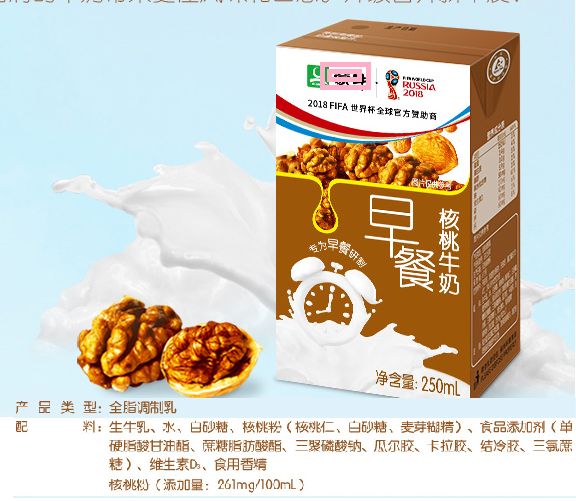 商家宣称早餐奶是“专为早餐研制”,有些产品还添加了核桃,更是让妈妈们深信早餐奶比普通牛奶营养好。
