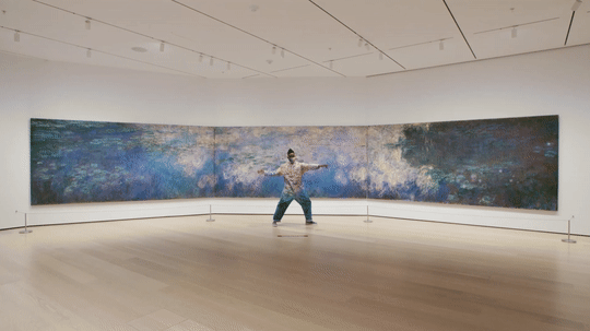 ● Chet的《睡莲》制服!而这其实正是莫奈把它画得如此巨大的初衷——用让人看了就心情明快的蓝绿色池水、薰衣草色的云和纯净的天空,温柔包裹每个人。就像Chet说的,来这不用纠结绘画技法的严肃问题,因为美而感到心情愉快,那就够啦。