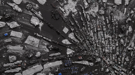 这幅出自印度画家Vasudeo S. Gaitonde之手的抽象画,正是乍看八成让人摸不着头脑的典范。Gaitonde解释,“每一张画布都有一种蜕变,变形记永无止境。”仔细观察你就会发现,画里的颜料层层堆叠,看似和谐的颜色之下,藏着某些被刮刀破坏的地方,奶油白从金色中透出来,甚至还有粉色和红色的斑点……嗯,似懂非懂。