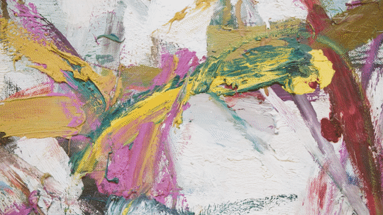 这些意味着什么呢?不必追问。在导览人Cara Manes看来,这幅《Painting 4》的最佳使用方式,就是工作无聊时盯着发呆的摸鱼利器。把抽象的笔触当作奇形怪状的小人,看着他们在地平线上起舞,思绪开始漫游,你会进入沉静的冥想,收获内心的平静。
