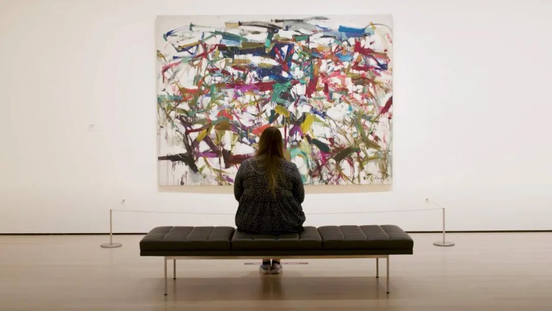 ● Christine在Joan Mitchell的画前,Joan Mitchell在自己的画里仿佛看见自己的涌动情感和思绪被珍视,被接纳,变成了一幅画,Christine的焦虑被奇妙地抚平了。这幅画成了她的避风港,每隔一段日子,她会就回到这里,看看画,感受自己。