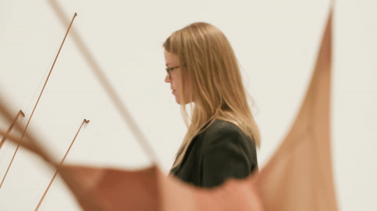2019年,MoMA二楼进行扩建,管理员Megan Randall负责重新安装《R.S.V.P I 》。这件作品是由10个塞满沙的尼龙袋子,以特定的角度,拉伸到了绝对极限。有点像怀孕女性的身体,经历变形,脆弱又强大。