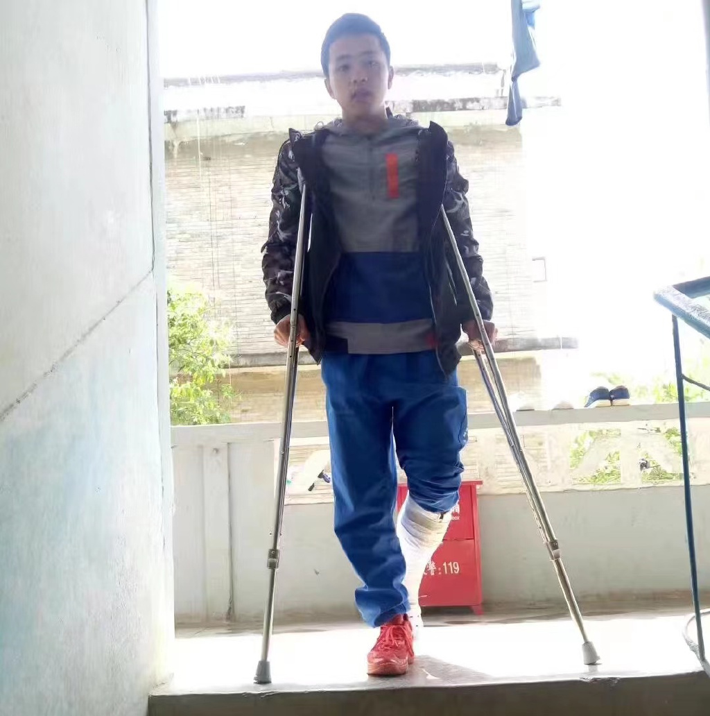 一次比赛中,他左小腿反着关节落地,全身重量压了上去,脚踝和膝盖严重扭伤,“在医院躺了十来天,没有断腿已经非常幸运。”