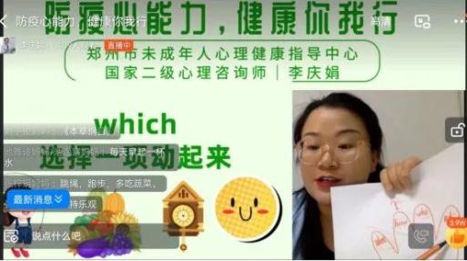 在“防疫心能力 健康你我行”心理辅导活动中,李庆娟从身体健康、心理健康、社会适应、道德健康等方面对孩子们进行了心理健康教育,指导孩子们正确认识疫情,培养坚韧不拔的性格,以积极乐观的心态面对学习和生活,关心自己,关爱他人,一起传递同舟共济、乐观向上的精神力量。