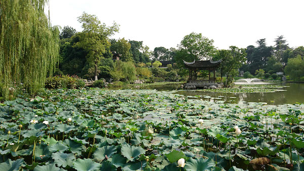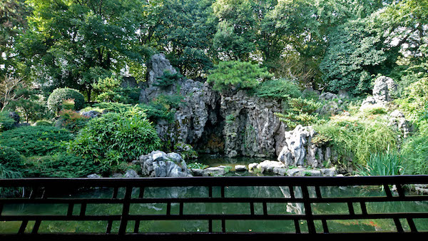 入园的通道在湖的东北角上,按照《江南园林志》的图版,入口处原本有竹林,竹后有竹坞轩三间。《愚园全图》里面,树木多到好似个热带雨林。但现在入园的第一感觉是太像公园了,轩和竹林都见不到了,到处都是草坪,视线没有约束,空间缺乏引导,少了原本曲径通幽的感觉。不过,撇除这些难看的现代景观设计,还是能品到一些庭园的味道。