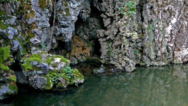 上面说的种种缺陷,仅仅是今时现场游赏的感观,有些是后期维护不当的问题,瑕不掩瑜,这座南山的成就还是很突出的。静妙堂南的池山都是刘敦桢先生的作品,虽然现在看来假山形态不是很完美,但是那时是建国初期,资金窘迫,物料也不丰富,给设计师发挥的空间并不多,崖脚水边的龛穴矶岸,还有山侧的水洞,却都能做得十分精彩。刘老先生还利用这个机会,尝试了创新的叠山方式,用十分有限的资源,造出尽可能好的假山,有一定的试验性质,能达到这个效果,很令人敬佩。