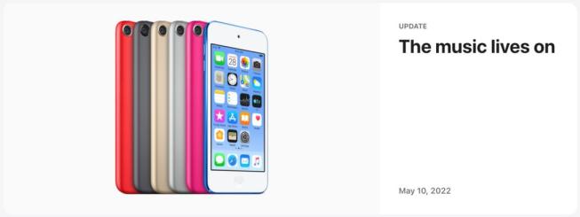 参考资料:https://www.apple.com/newsroom/2022/05/the-music-lives-on/https://www.theverge.com/2022/5/10/23065412/apple-ipod-touch-canceled-discontinuedhttps://thenextweb.com/news/the-ipod-is-deadhttps://gizmodo.com/apple-discontinues-ipod-touch-officially-killing-ipod-1848905947https://www.engadget.com/apple-discontinues-ipod-touch-161433001.html