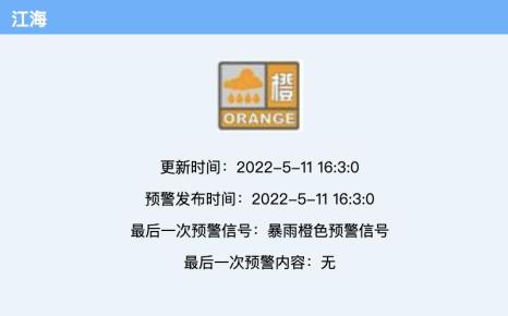 将江海区暴雨黄色预警升级为橙色