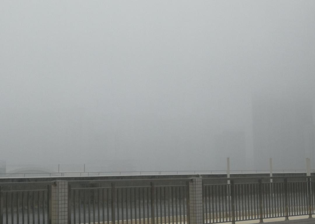 大雨来袭建筑物都“消失”在雨中