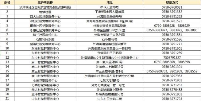 【全区临时庇护所全天开放】外海街道