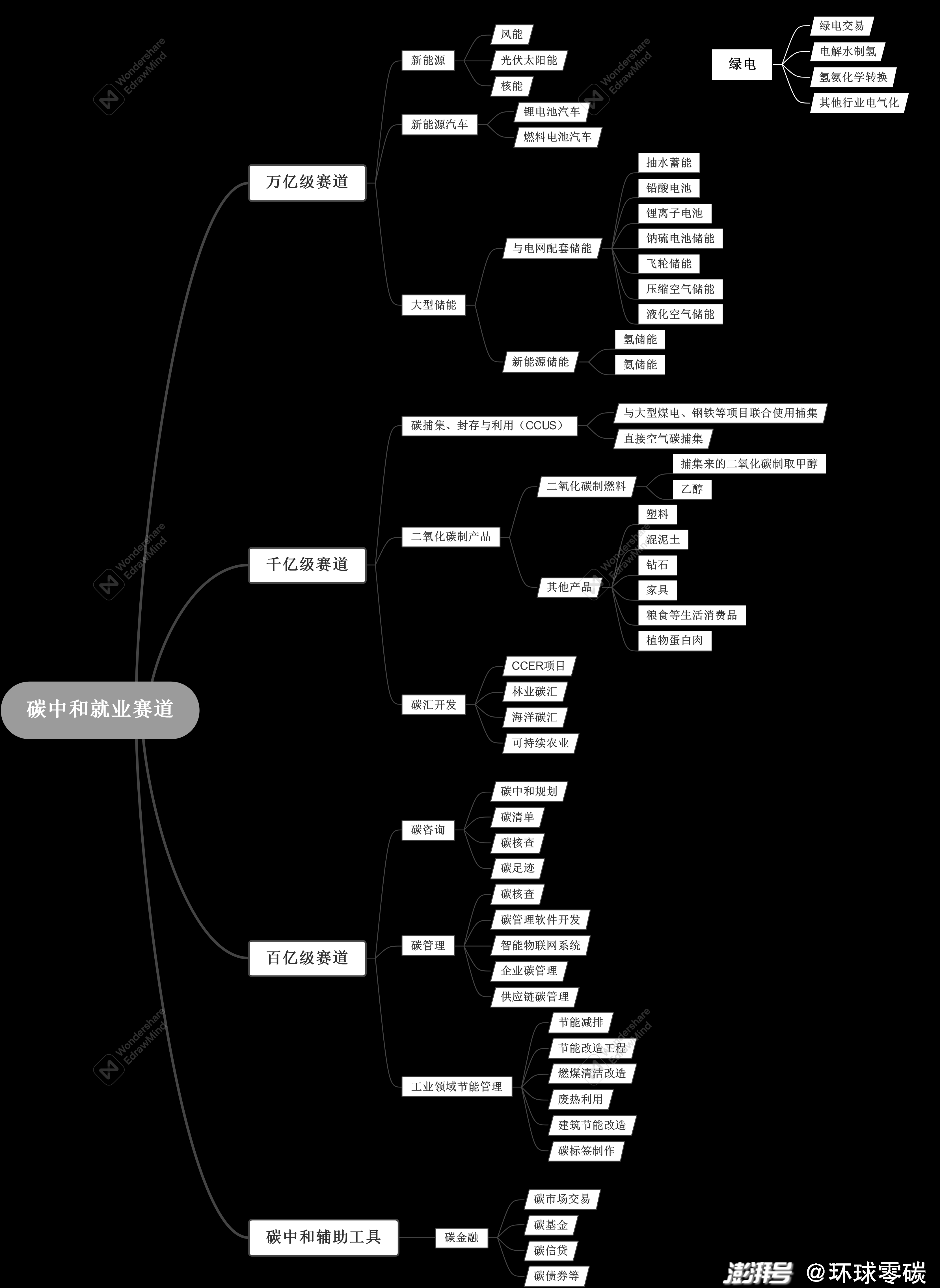 参考一些资料,我们先看一下这张碳中和就业赛道导图,不一定完整,但可以看一个大概。