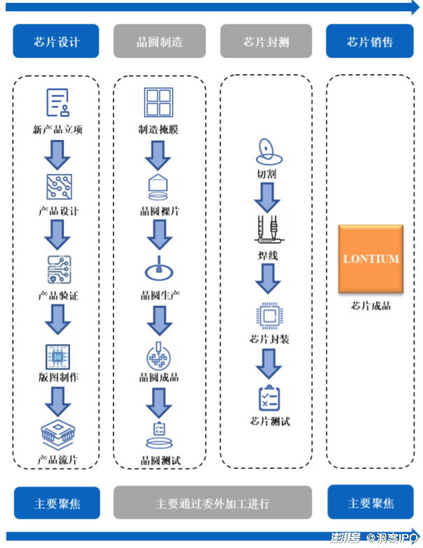 而作为典型的以 Fabless 模式运营的集成电路设计企业,龙讯股份主要专注于集成电路的研发设计和销售环节,公司芯片的生产通过委托晶圆生产厂和封装测试厂来完成。公司向晶圆生产厂主要采购晶圆生产服务,向封装测试厂采购封装测试服务。