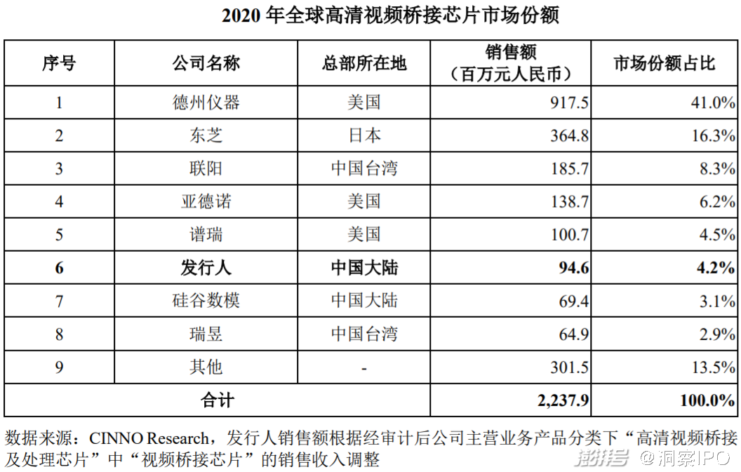 据统计,在2020年全球高清视频桥接芯片市场和高速信号传输芯片市场中,德州仪器分别占据了41%和45.7%的市场份额,而龙讯股份仅占4.2%和0.9%;在上述两个领域的中国大陆市场中,德州仪器也分别占据了50.1%和45.7%的市场份额,而龙讯股份仅占6.2%和0.9%。
