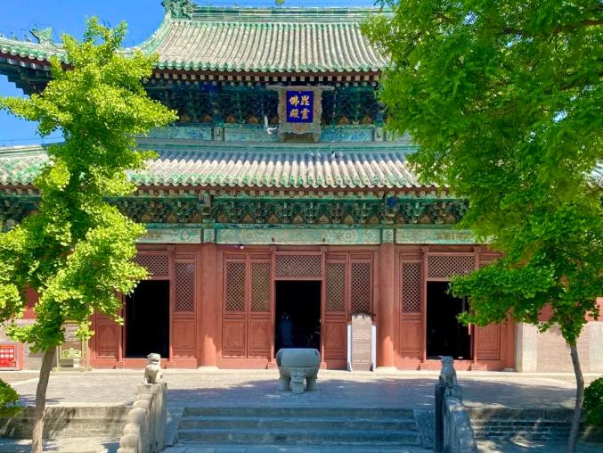 隆兴寺内现存最早的宋代建筑——天王殿。天王殿面阔五间,进深二间,七檀中柱式,单檐歇山顶。