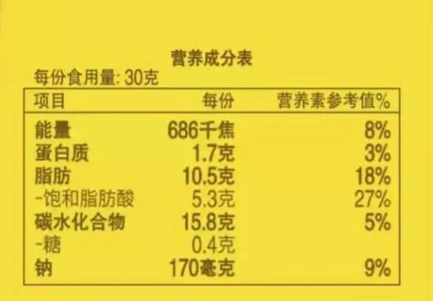 营养标签非常实用,日常生活中还可以利用它来判断这款食物是否能满足孩子的特殊营养需求,比如婴儿添加米粉时建议选择铁强化的米粉。在食品包装上往往会标注“高铁”、“铁强化”等字样,即为营养素含量声称,家长们除了利用这些声称来选择需要的米粉外,还可以通过比较各款米粉的营养标签中标识的铁含量来选择。“除了利用营养标签判断食物的营养成分是否能满足儿童的需求,还可以避免营养摄入过剩。”朱冰泉举例:很受孩子们欢迎的薯片,30g原味薯片提供的能量是686KJ,一般小包装的薯片一袋为75g,也就是说一次性吃完一小包薯片摄入的能量是1715KJ,以一个6岁男童为例,一天的能量总需求是5852KJ,小包薯片的能量已经达到了29%,当加上一日膳食提供的能量,那这一天孩子的能量摄入就明显超标了。如果孩子经常吃薯片,就可能因为长期营养过剩导致超重肥胖。因此,家长们在给孩子选择零食的时候一定要看一看营养标签,为孩子选择适合的食物,
