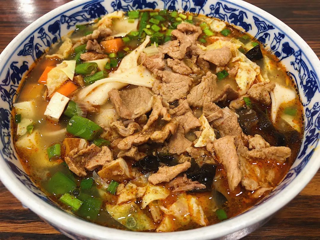 所谓的臊子其实是细细剁碎的肉沫,但臊子面汤料不只有肉沫,实际一碗臊子面用料丰富得很。红黑青黄白五色俱全,红的是胡萝卜,黄是鸡蛋,干黄花菜,黑的是木耳,青的是蒜苗,白的是豆腐,一碗臊子面,隔壁小孩儿都馋哭了!