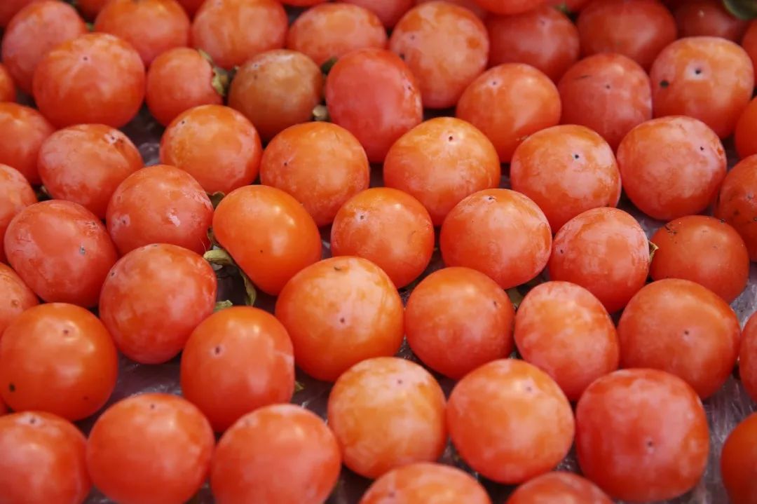 /火晶柿子/秋天,挂在枝头的柿子不仅好看,而且好吃。去西安,一定要吃一只临潼的火晶柿子,一柿糖心一吸,甜甜凉凉的柿子真好吃!