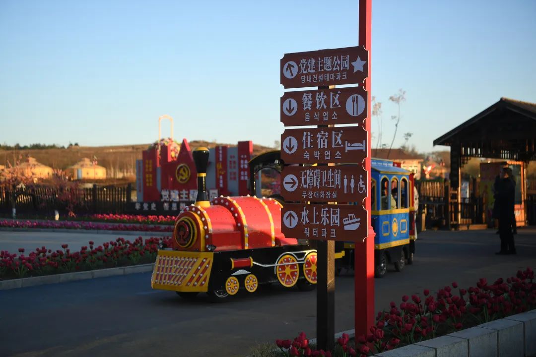 大气壮观的党建主题公园、飞流直下的人工瀑布、仙气飘飘的网红桥、刺激有趣的彩虹滑梯、炫彩夺目的梦幻稻田、特色鲜明的“哆咪屋”、令人垂涎欲滴的朝鲜族美食、精彩纷呈的歌舞表演……朝阳村令人流连忘返。