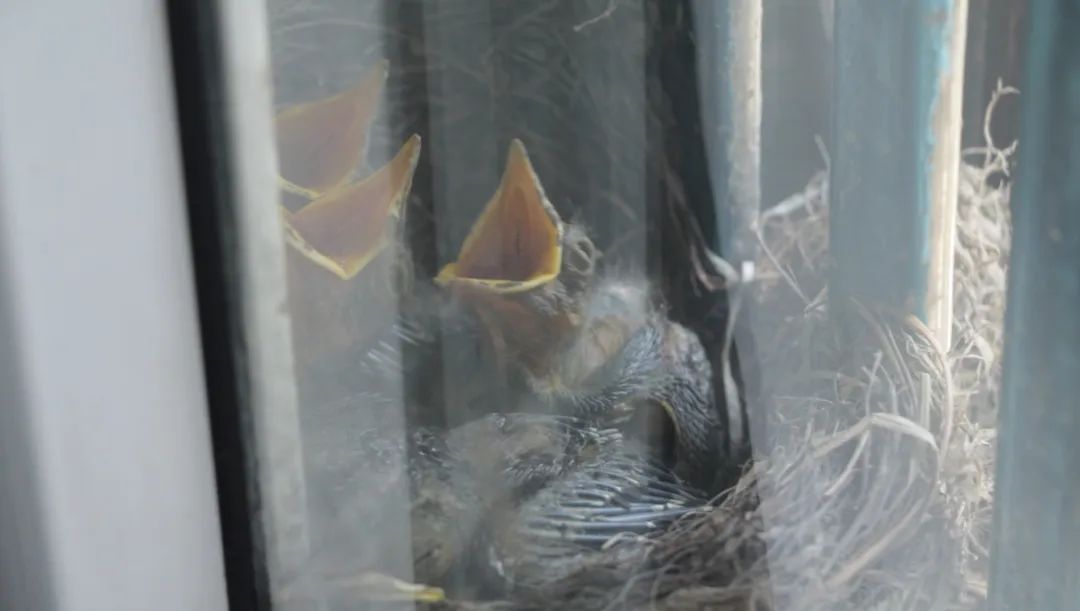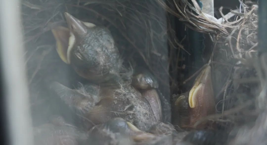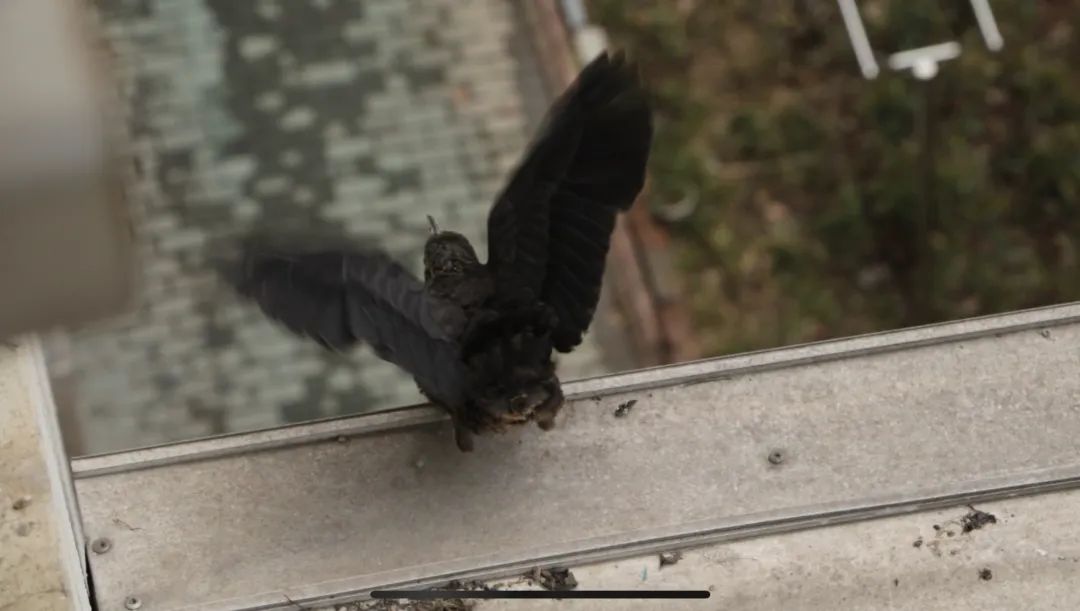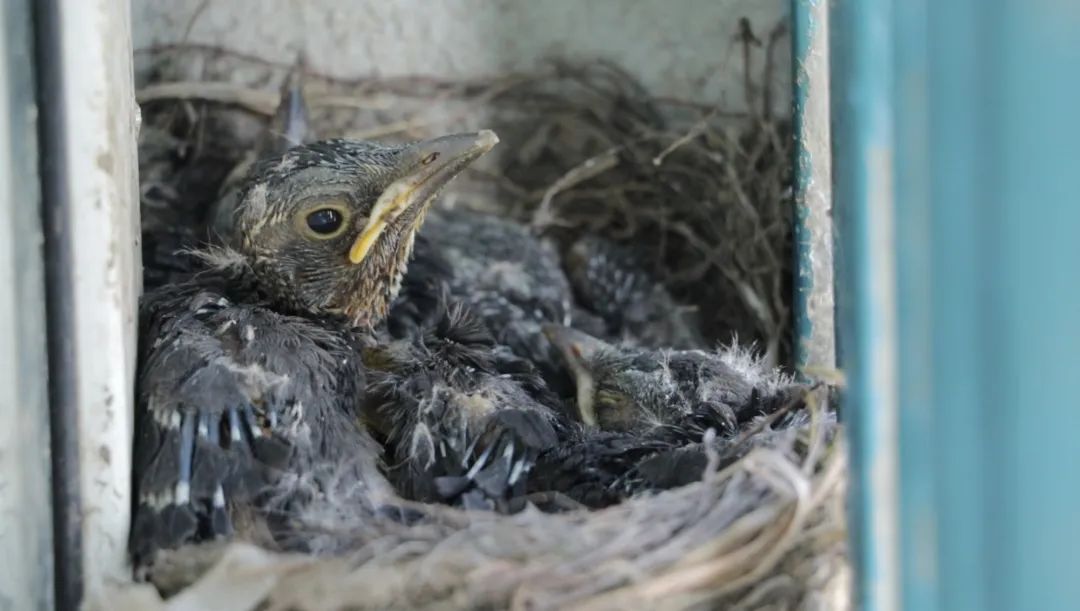 三月份,多次在家里许久不用的窗台上,看到一只乌鸫匆匆飞走,没多留意。清明假期准备晾晒被子的时候,发现那只乌鸫还在,就检查了一下窗台,结果发现窗台上有一个窝,里面已经孵出了四只小鸟。每天给小鸟录一小段像,发现它们长势惊人——第一周从一个肉团团长成裹满绒毛的“乌鸡”,第二周就陆续试飞离巢。