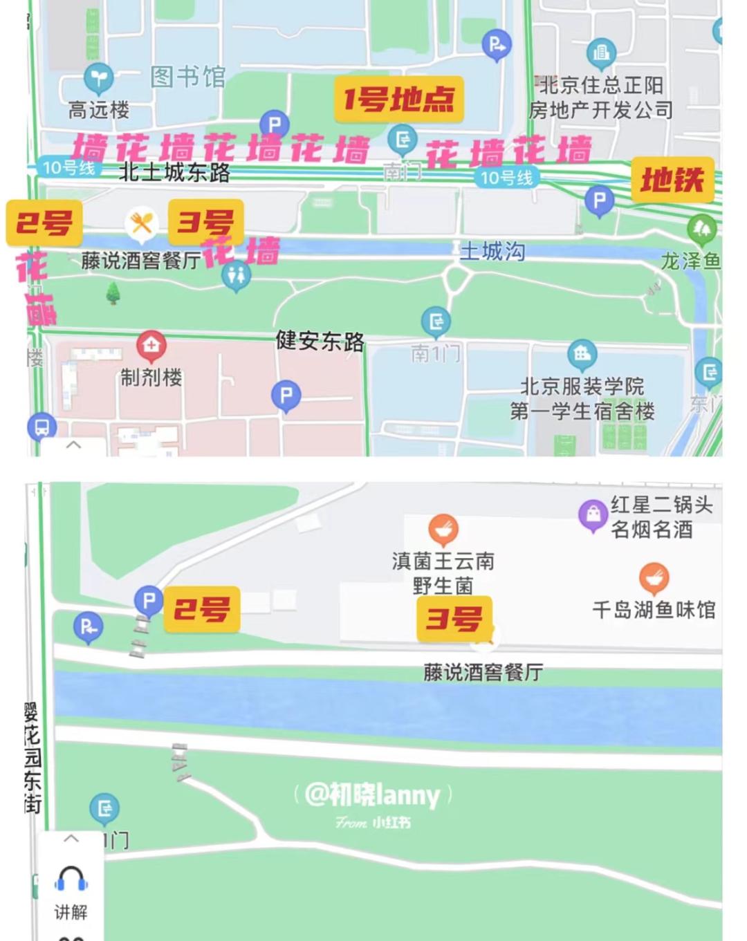 地铁十号线惠新西街南口出,沿着漫长的路前行,在对外经济贸易大学的斜对面,就能看到那面“网红”花墙了。