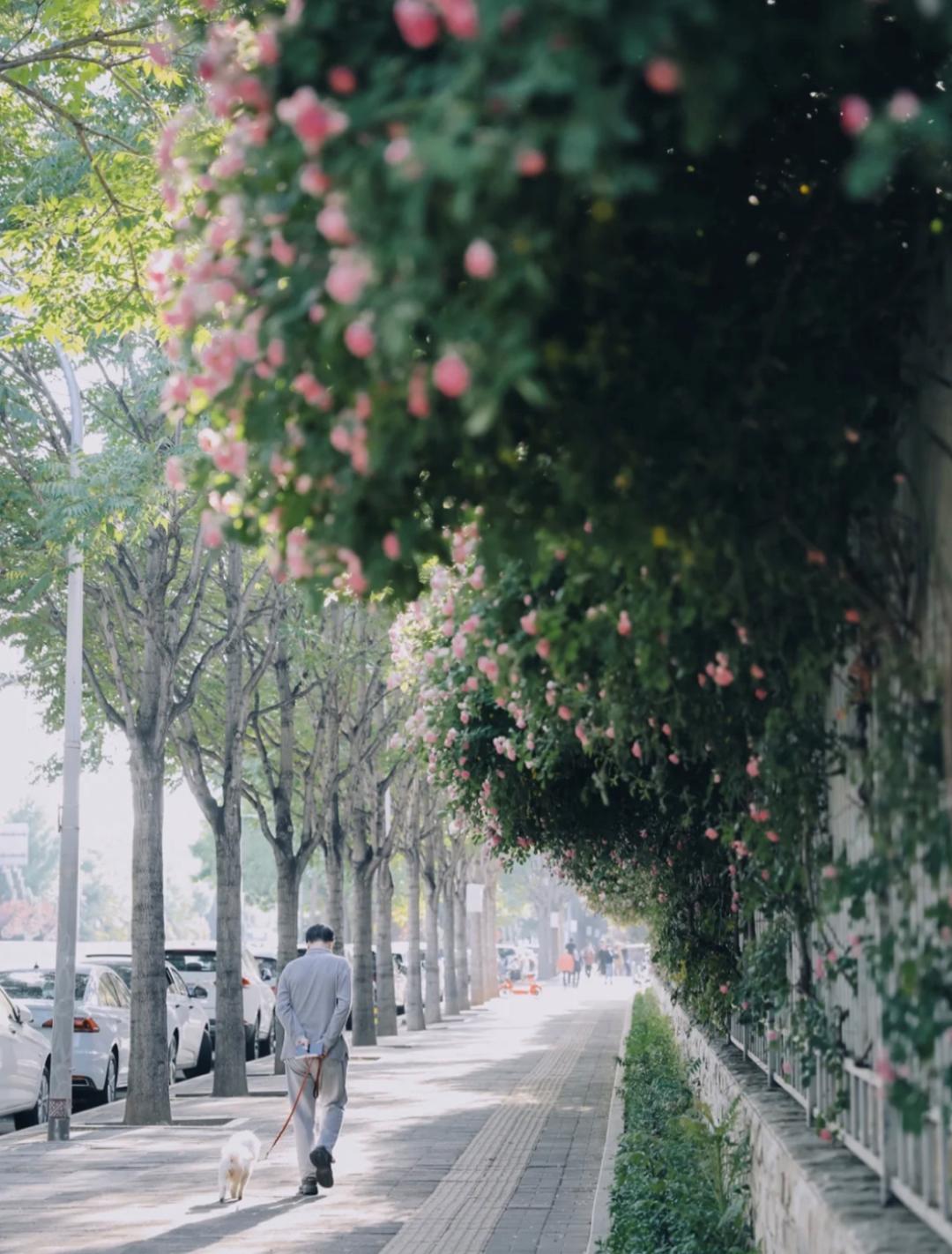 偶尔能遇见几个来拍照的少女,往花墙边一站,就是粉嫩嫩的风景。