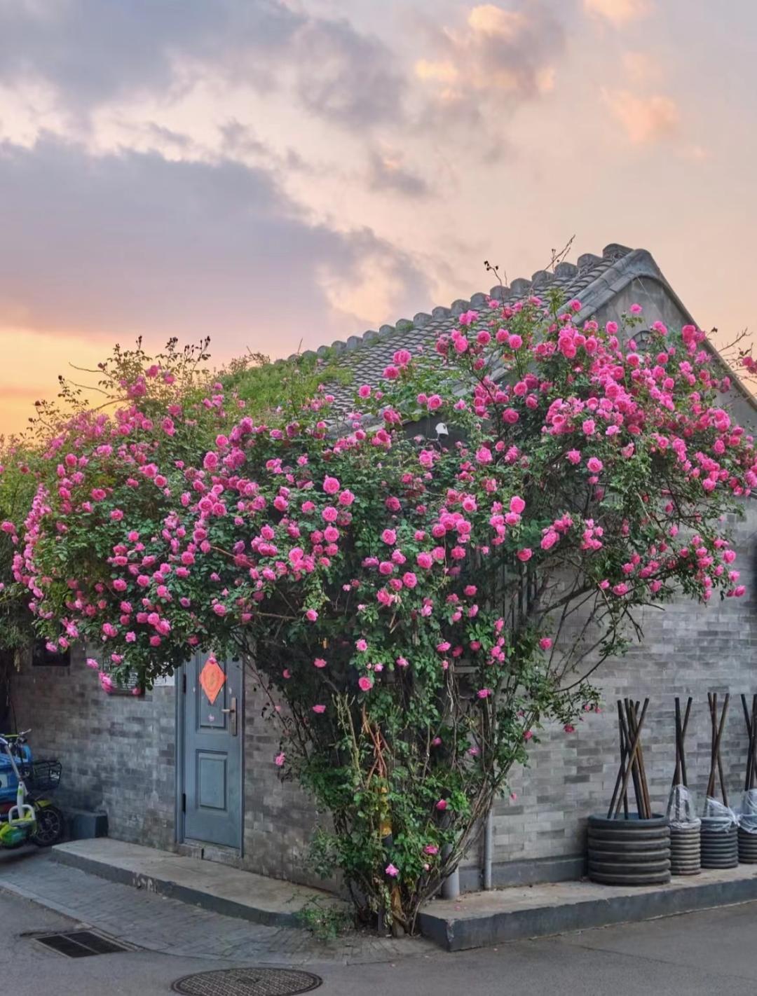 藏在胡同里的浪漫,蔷薇花墙、周围的古旧建筑和有特色的座椅,形成一种别样的美感。特别推荐转角处的“爱心蔷薇”哦!