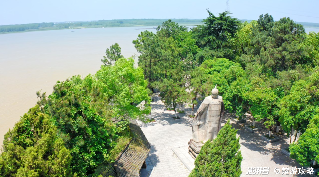 周郎石像,傲对长江,壮志满怀指点江山如画,周都督雕像手持利剑,目光英武,面对曹军的二十多万强敌毫不畏惧,整个雕像把周瑜“雄姿英发”的英雄气概表现得淋漓尽致。